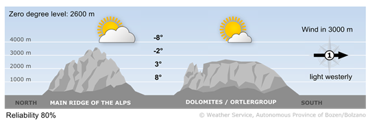 Sunny conditions also prevail on the mountains, with high clouds passing far above the peaks. It will remain mild.