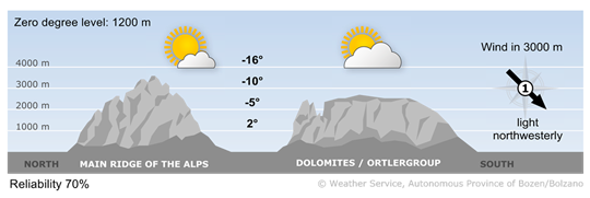 Sun and clouds: The pressure differences across the Alps will be low and the upper air flow will turn to the northwest.