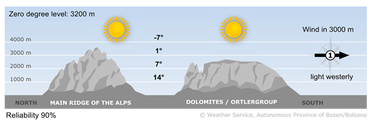 The mountain weather will be very sunny with excellent visibility. The weather will remain mild.