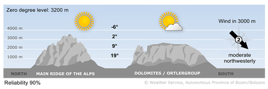 Sunny weather across the whole province. A few thin clouds will pass through during the day. The Föhn wind will continue to blow in the northernmost valleys. Minimum temperatures will be quite low, with maximum temperatures between 21° and 27°.
